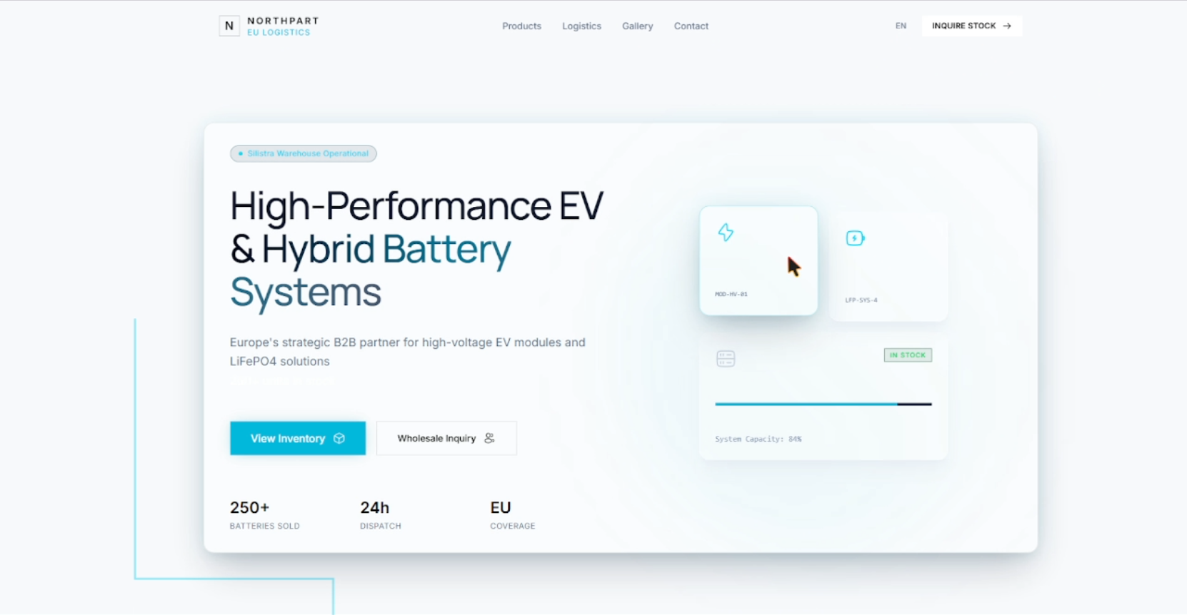 Корпоративен уебсайт за дистрибутор на EV и соларни батерийни решения. Модерен дизайн съобразен с B2B аудитория и технически продукти.